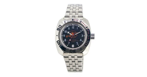 Orologio meccanico Vostok Amphibian Classic 710059. Vostok 2416 movimento automatico. Questo orologio ha sia un carica manuale che un carica automatica. Corona a vite (acciaio). Impermeabilità 20 atm (200 metri) - cioè può essere utilizzato per le immersioni. In un set: orologio..